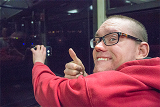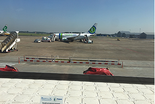 The main booker receives a text message which redirects them to their flight plan. This is an overview of all his activities. At this point in time there are no delays and their flight will still arrive on time.
