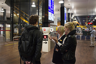 An object or device that empowers personnel to provide better support to travelers. The service provided by personnel is already being changed by the upcoming of the self-service machines. Personnel is moved towards the other side of the desk. They cannot ʻhideʼ behind their desk anymore. A more active attitude is expected from personnel. Another result is that personnel is more quickly approached by travelers with questions.