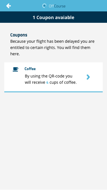The traveler has certain rights when their flight is delayed. After 2 hours of delay, the traveller is entitled to a beverage. In Offcourse they will be offered a voucher for a cup of coffee. The can pick it up at their favorite restaurant by scanning the QR code.